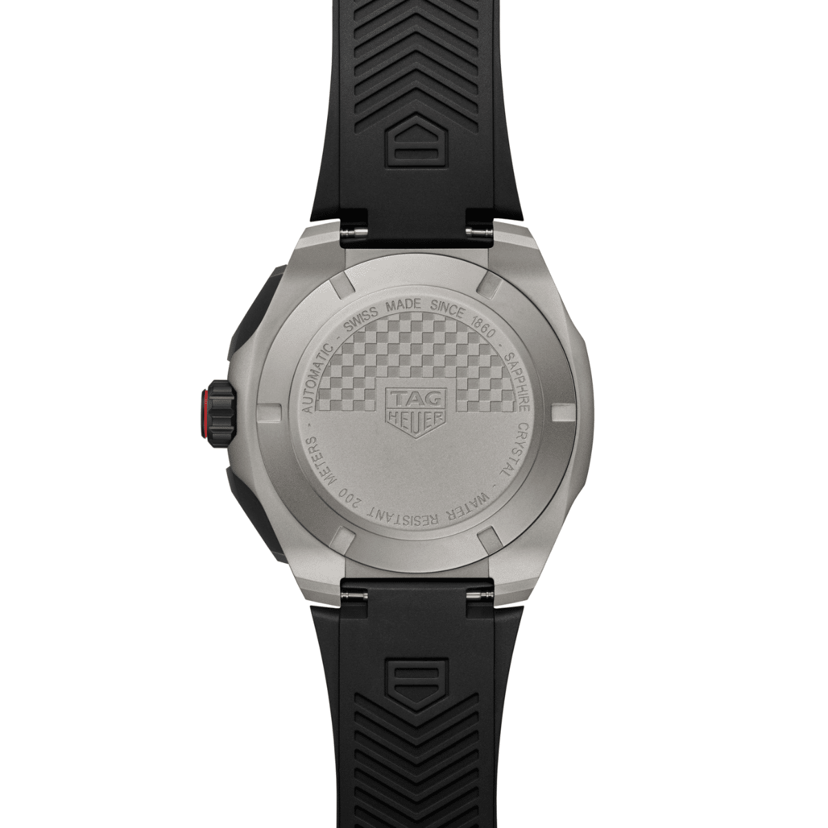 Deze robuuste chronograaf ademt racespirit. De zwarte opalin-wijzerplaat met rode gelakte details vangt de energie van nachtraces, terwijl luminescerende wijzers en indexen optimale leesbaarheid garanderen. De DLC-gecoate tachymeterbezel met aluminium inzetstuk benadrukt de sterke autosporttraditie van TAG Heuer.
