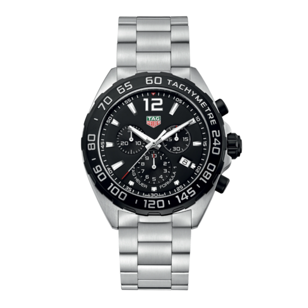 De TAG Heuer Formula 1 is een gedurfd sporthorloge dat prestaties en design perfect combineert. Met zijn robuuste 43 mm stalen kast, afgewerkt met een zwart titaniumcarbide-gecoate bezel, straalt dit model race-DNA uit. Het krasbestendige saffierglas en de Super-LumiNova details zorgen voor optimale duurzaamheid en leesbaarheid, zelfs in uitdagende omstandigheden.