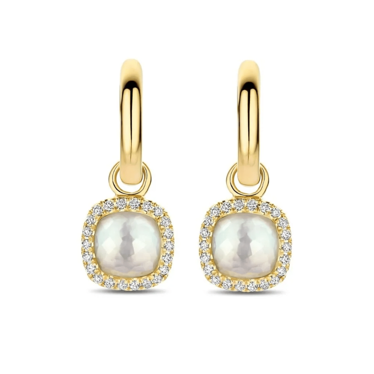 Tirisi Jewelry 18 karaat geelgouden oorhangers met witte kwarts en diamant TE9317WQ