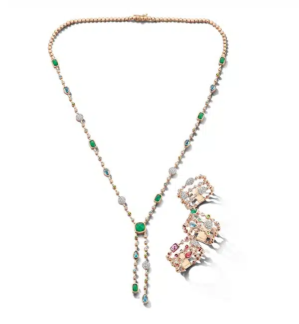 Tirisi Jewelry 18 karaat roségouden collier met smaragd, London Blue Topaas en diamant TN9099EM+LBTP