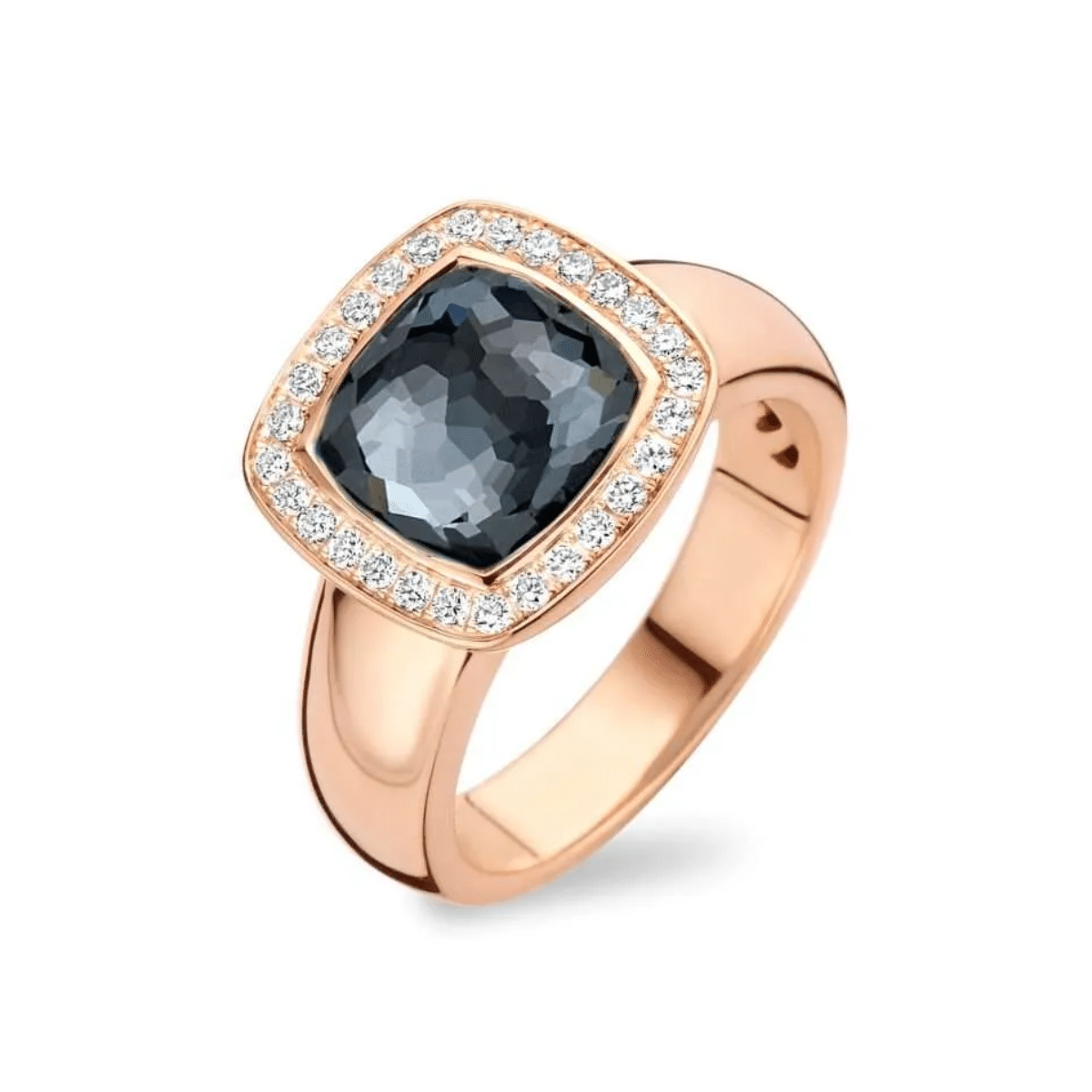 Tirisi Jewelry 18 karaat roségouden ring met hematiet, bergkristal en diamant TR9697HMP