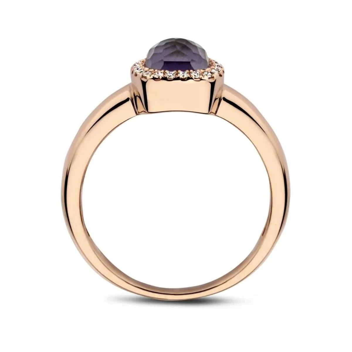 Een opvallende combinatie van kleur en karakter komt samen in deze 18 karaat roségouden ring uit de iconische Milano-collectie van Tirisi Jewelry. Geïnspireerd op de grandeur van de glazen koepel van de Galleria Vittorio Emanuele in Milaan, verenigt dit ontwerp elegantie met een eigentijdse flair.