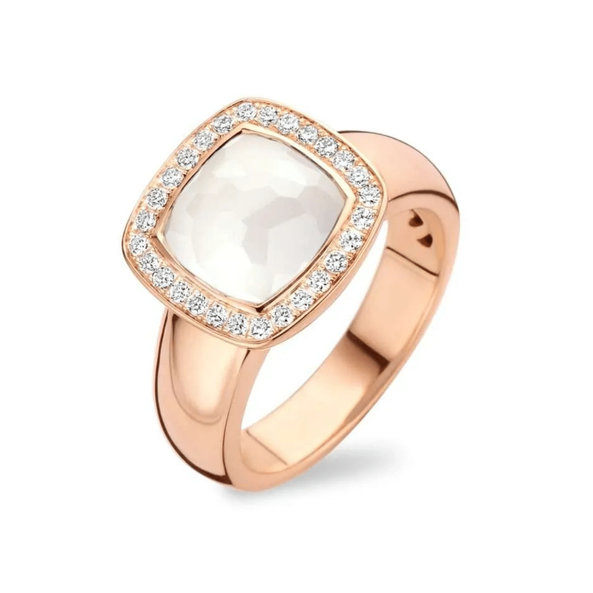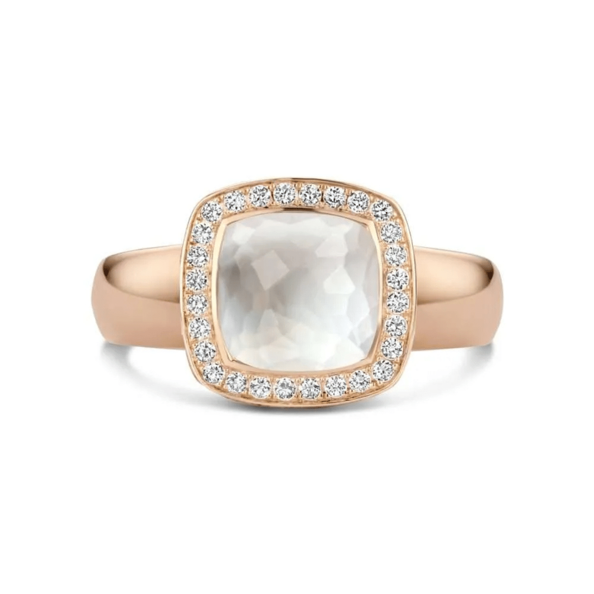 Tirisi Jewelry 18 karaat roségouden ring met witte kwarts en diamant TR9697WQP