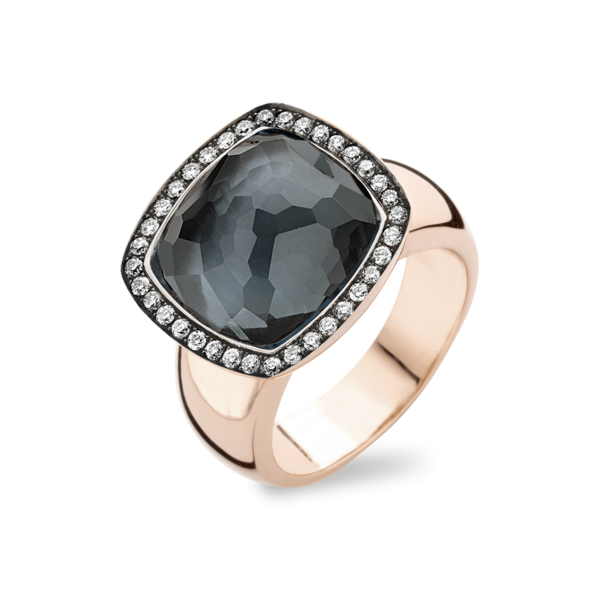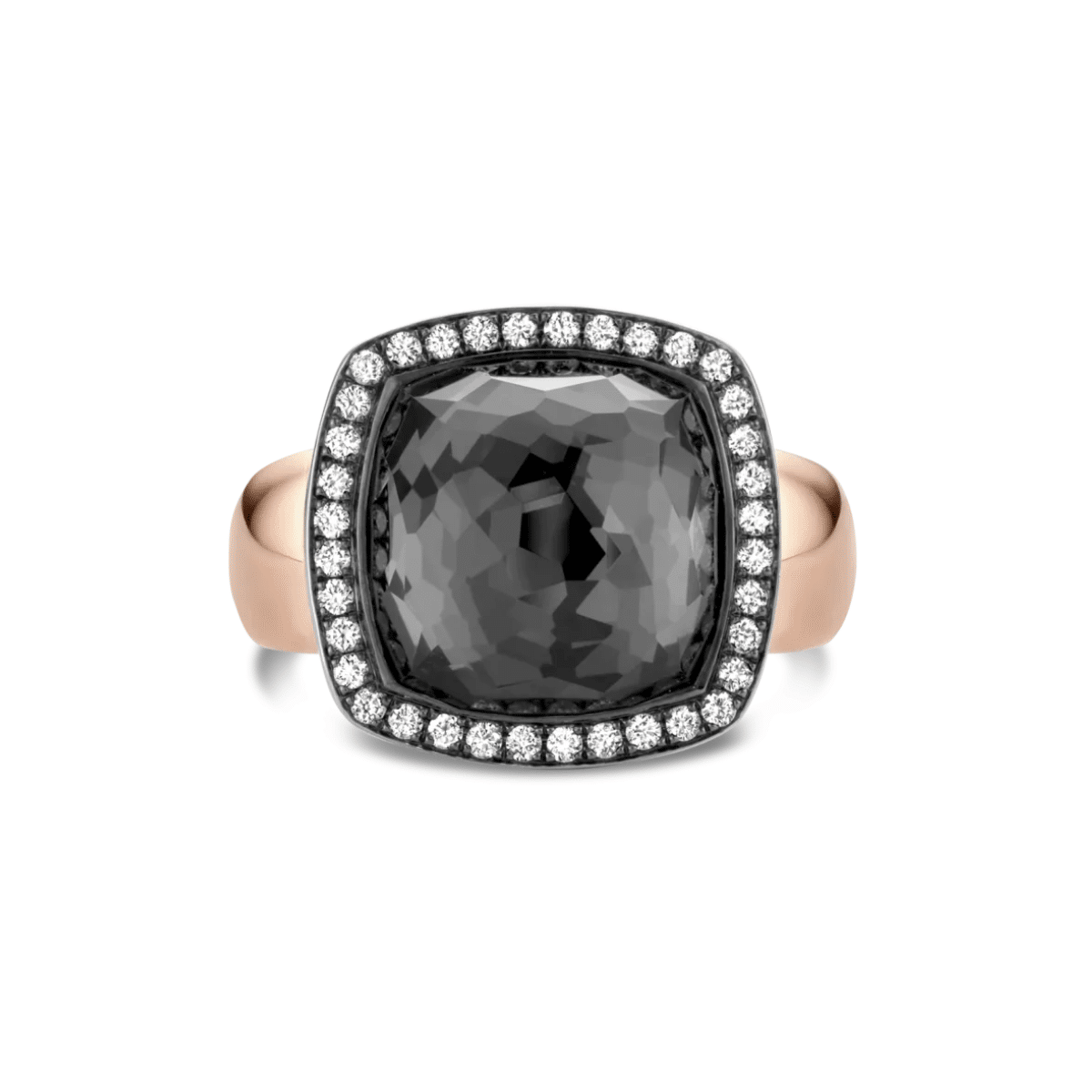 Tirisi Jewelry 18 karaat roségouden ring met hematiet en diamant TR9361-1HMP