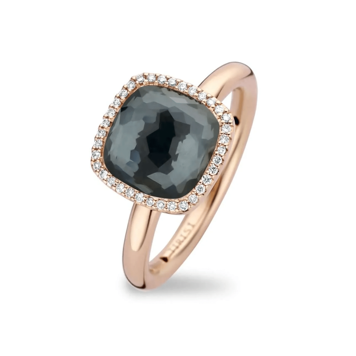 Tirisi Jewelry 18 karaat roségouden ring met hematiet en diamant TR9718HMP