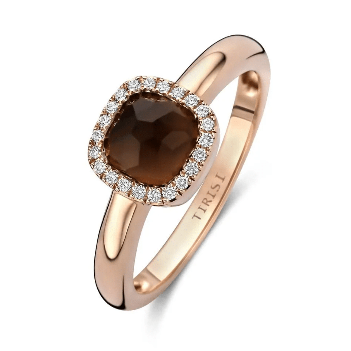 Tirisi Jewelry 18 karaat roségouden ring met lichte rookkwarts en diamant TR9624LSQP